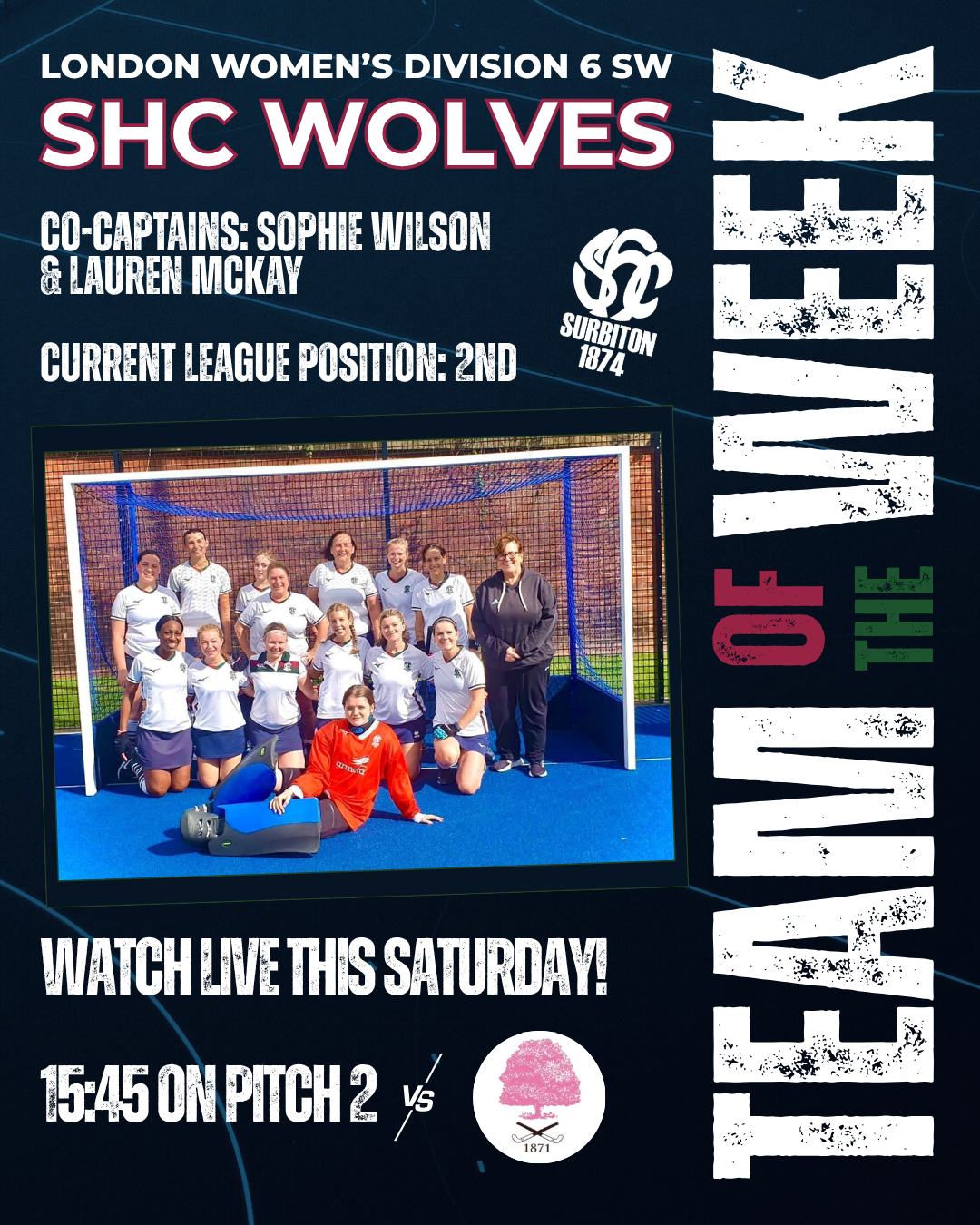 Next up as Team of the Week are the SHC Wolves who play Teddington 7s in the London Women's Division 6 SW on Pitch 2 at 15:45. Good luck ladies!