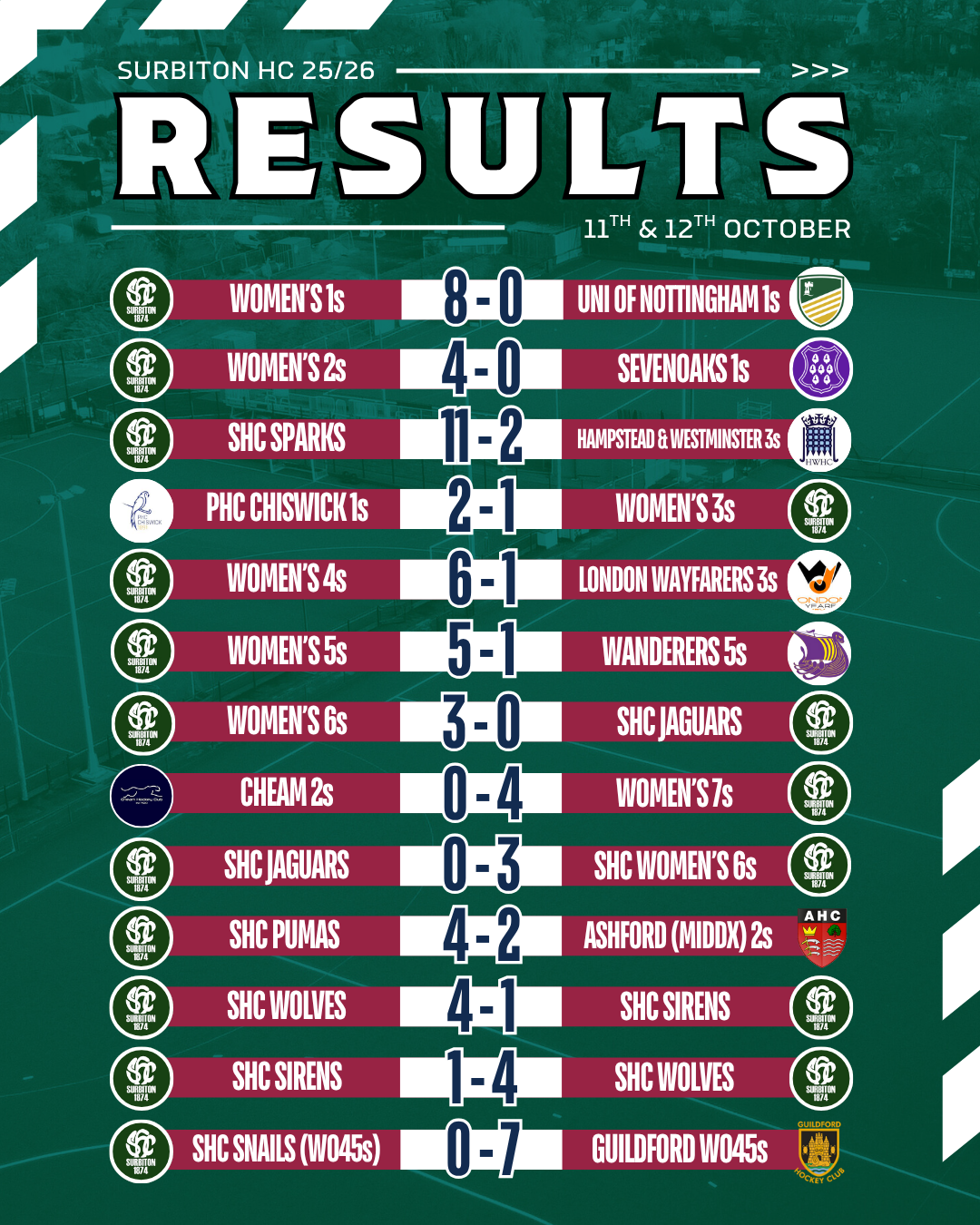 24 of our senior sides were in league and cup action over the weekend and there were some exciting games, with 76 goals scored by Surbiton!