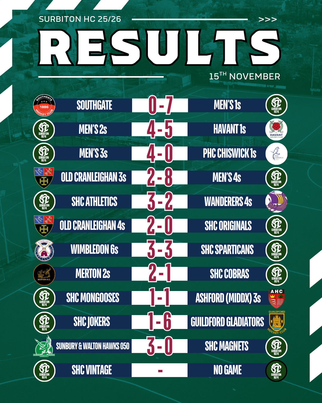 Match reports will be added as they come in - please send yours to magazine@surbitonhc.com