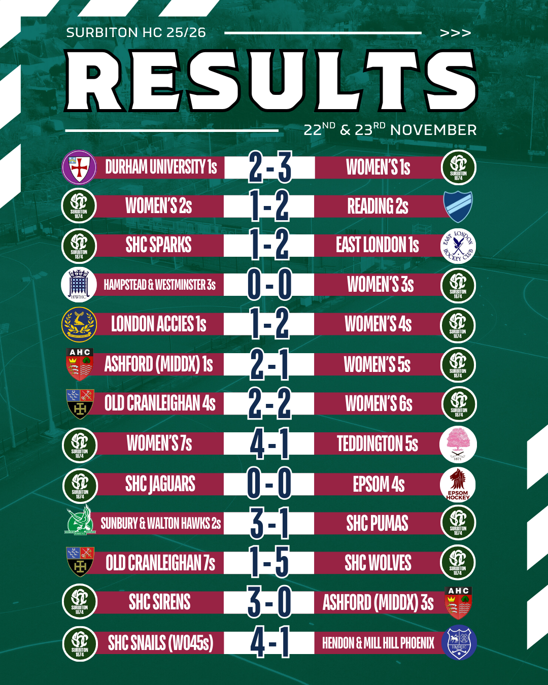 Match reports will be added as they come in - please send yours to magazine@surbitonhc.com