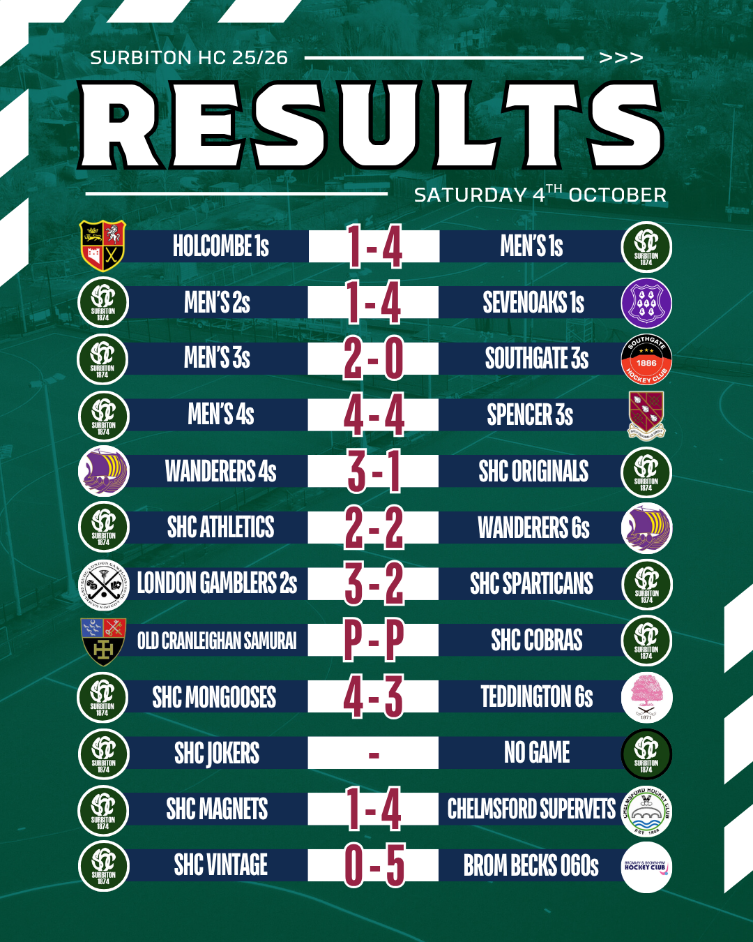 Match reports will be added as they come in - please send yours to magazine@surbitonhc.com