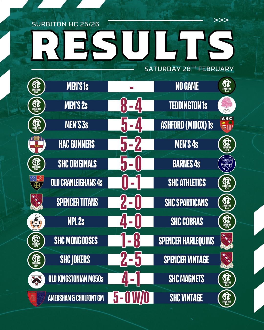 With 22 games taking place there were some amazing scorelines and important results for a number of our senior teams... a massive shout out to our Men's 3s who have secured promotion back to the London Prem with four games to spare!