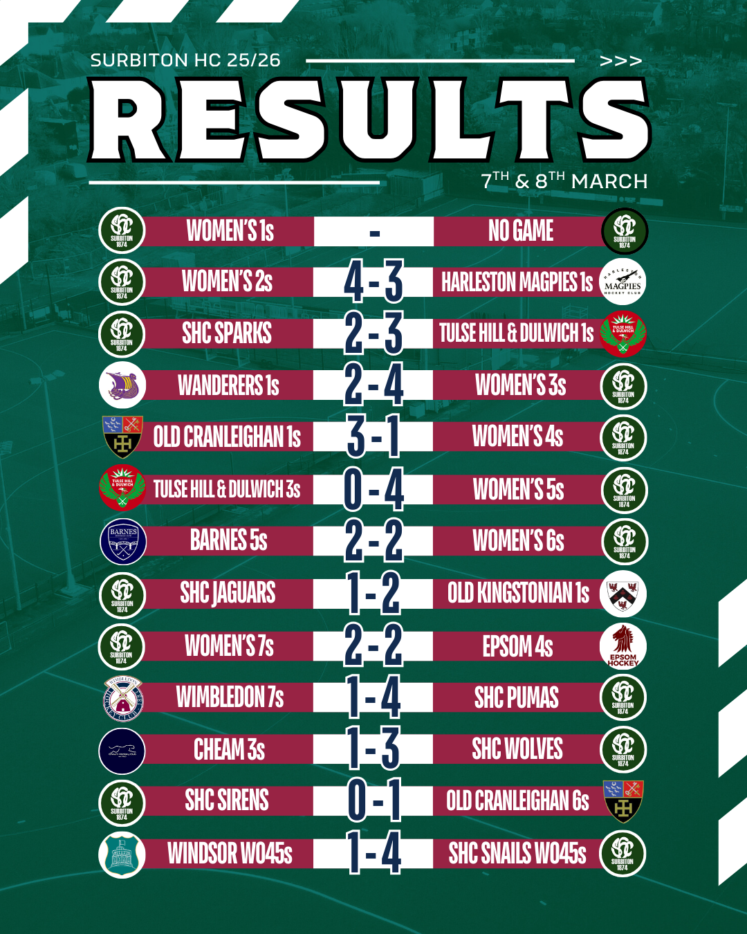 Match reports will be added as they come in - please send yours to magazine@surbitonhc.com