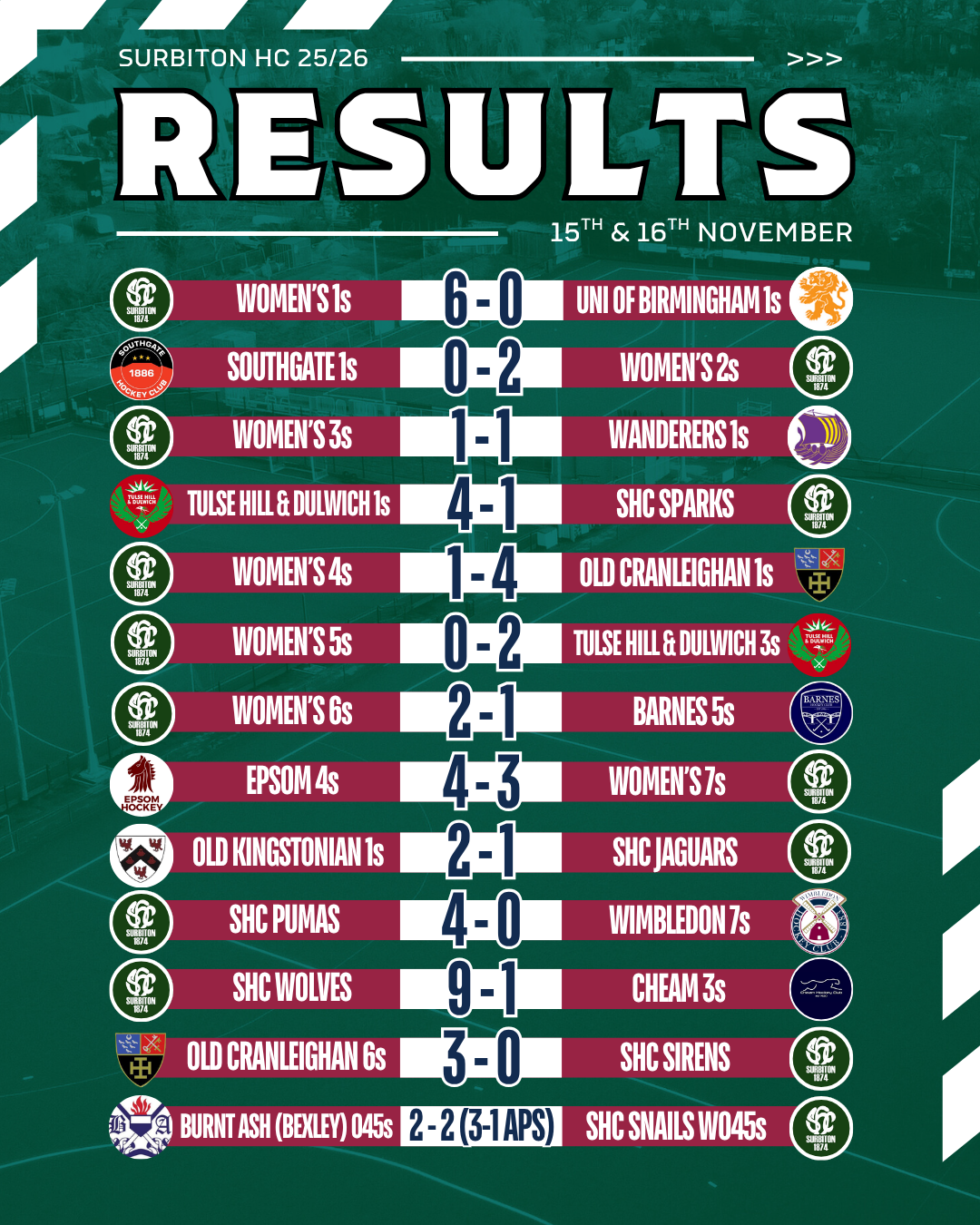 Match reports will be added as they come in - please send yours to magazine@surbitonhc.com