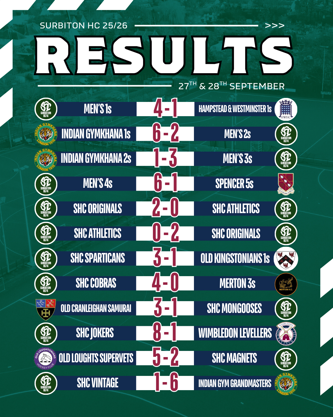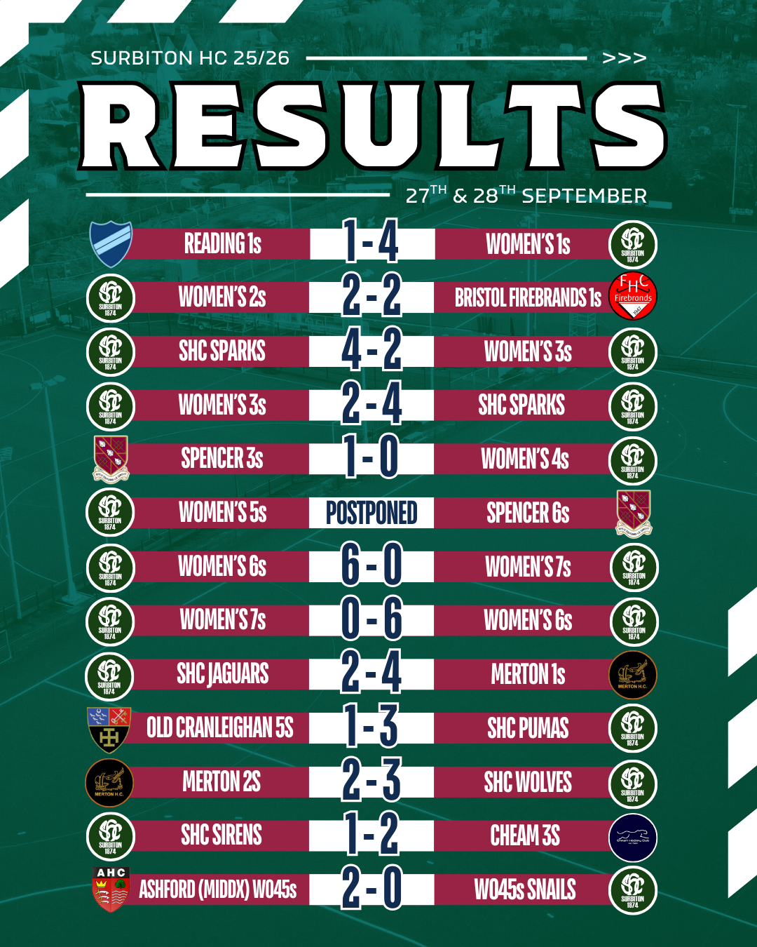 Match reports will be added as they come in - please send yours to magazine@surbitonhc.com