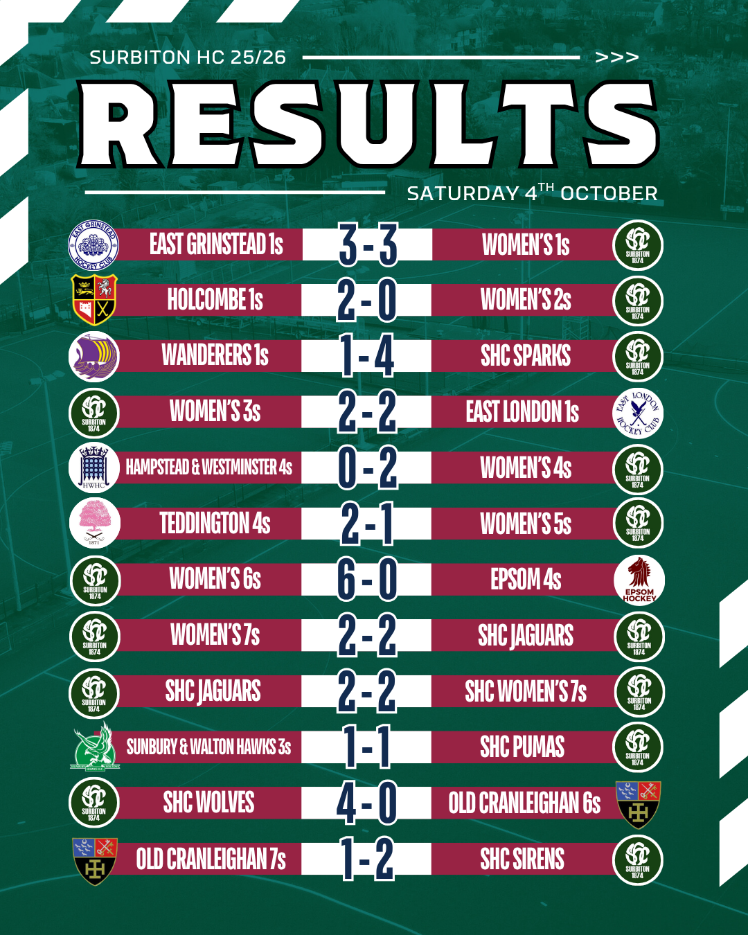 Match reports will be added as they come in - please send yours to magazine@surbitonhc.com