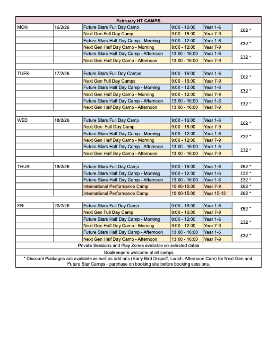 - Technical & Specialist Camps to help develop skills and techniques with specialist guidance