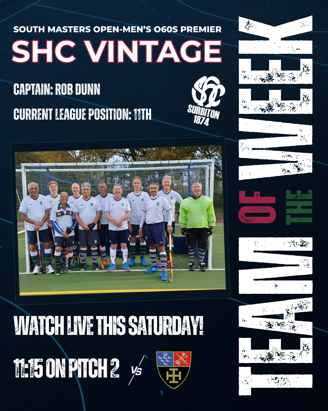 Saturday's Team of the Week is our Vintage, who take on Old Cranleighans Puricrans at 11:15am on Pitch 2. Have a great game chaps!