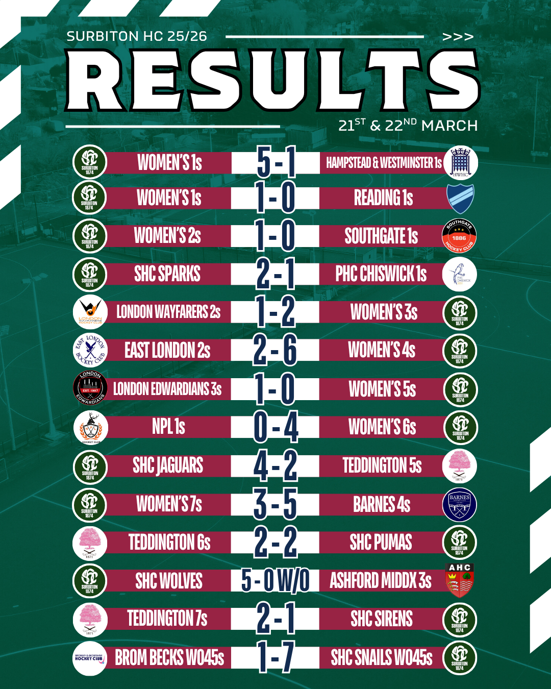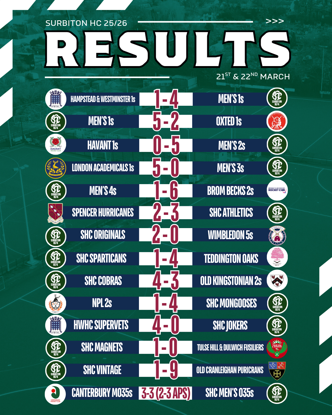 Match reports will be added as they come in - please send yours to magazine@surbitonhc.com