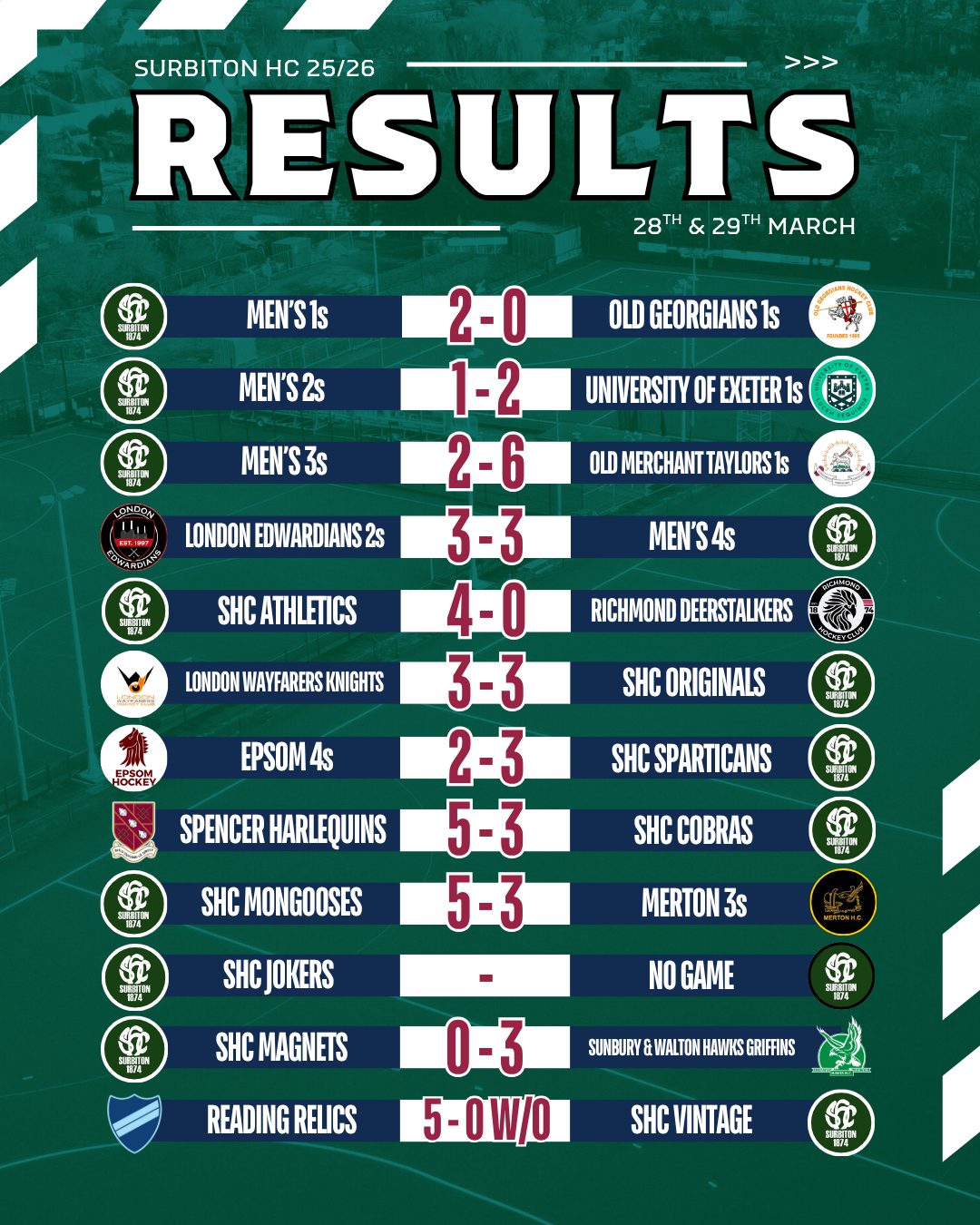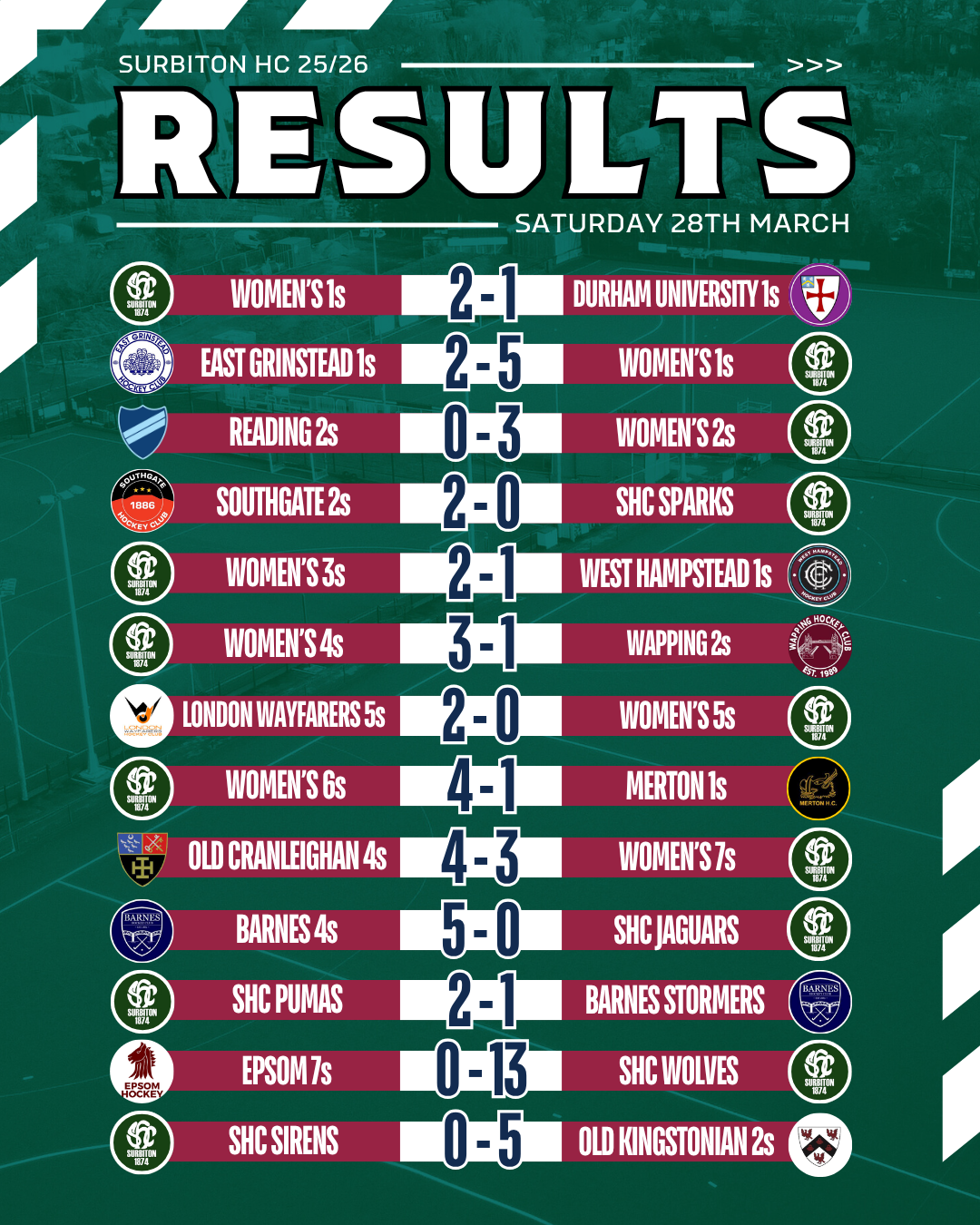 Match reports will be added as they come in - please send yours to magazine@surbitonhc.com