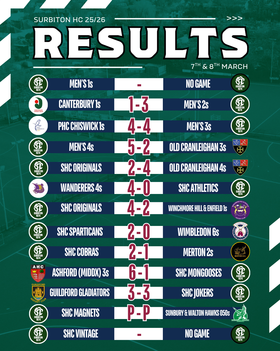 Match reports will be added as they come in - please send yours to magazine@surbitonhc.com